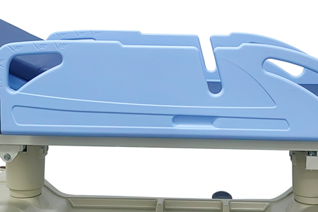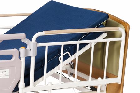 采用新型安全護(hù)欄設(shè)計(jì),當(dāng)護(hù)欄內(nèi)部受力時(shí)無(wú)法打開,可從外部向內(nèi)部按壓打開護(hù)欄,從而有效地防止了患者從內(nèi)部誤操作,導(dǎo)致墜床事故的發(fā)生,更加安全